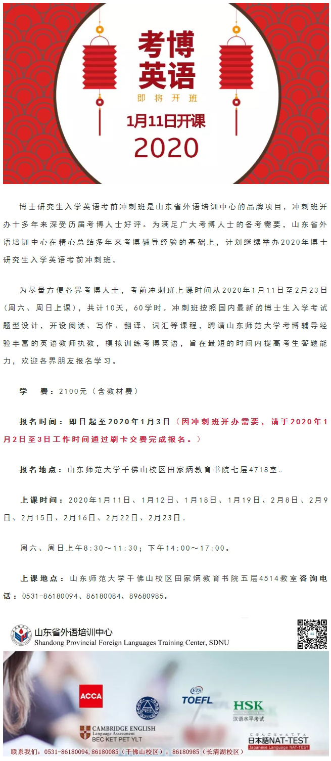 发布时间:2019-12-31 作者:山东省外语培训中心 编辑:培训中心老师 点击量: